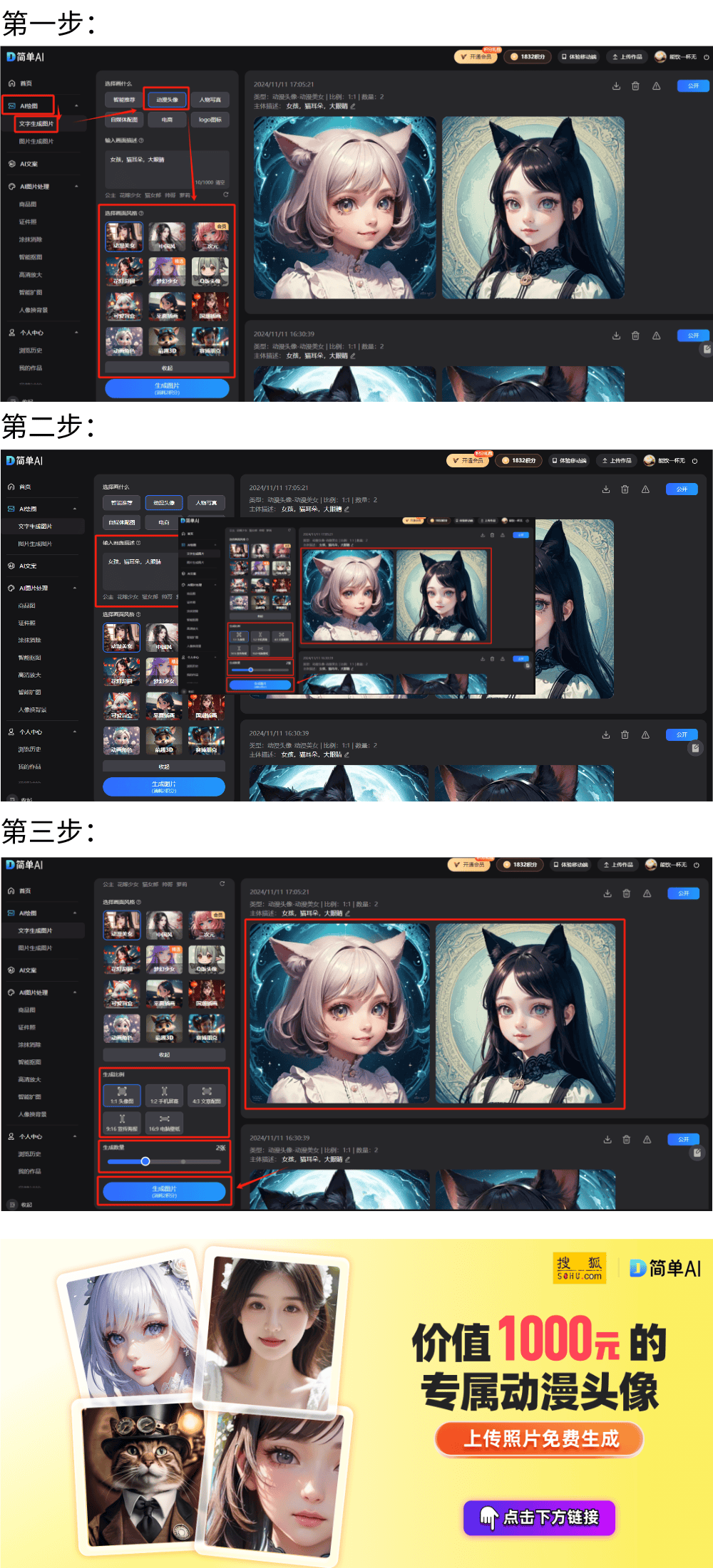 搜狐出品的“简单AI”凭仗其强大的“生图”功能脱颖而出。不少人起头寻找取脚色相呼应的动漫头像,适合所有用户;第三步:选择画面气概、生成比例及生成数量,输入想要创做的画面描述,